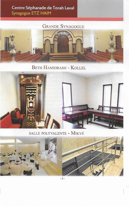 Aujourd’hui notre Synagogue, merveilleusement modernisee, au couer de Chomedey Laval, se veut un centre Orthodoxe Juif Sepharade ou tout le monde est invite a venir s’enrichir d’etudes de Guemara dans notre Kollel, de cours ou shiourim journaliers par notre Rabbin, de cours par notre Rabbanite Shoshana pour les femmes, d’un bon nombres d’activites communautaires pour tout, d’un minyan matin et soir, d’un service de priere de Chabbat et grandes fetes dans la pure tradition Marocaine.